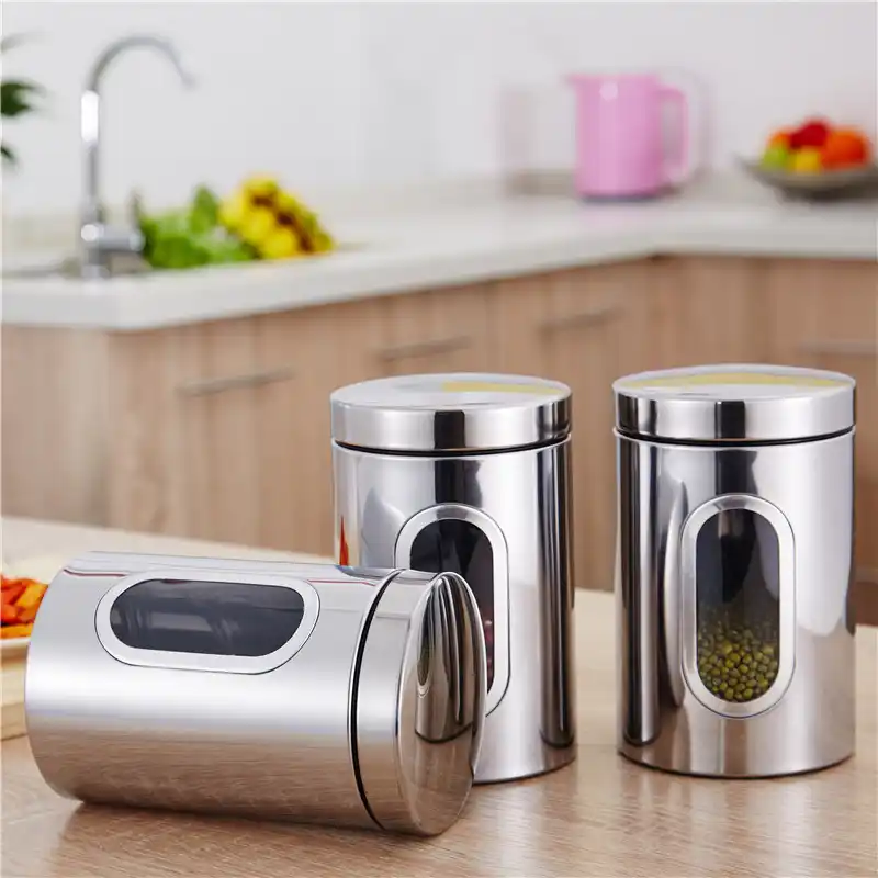 5 out of 5 stars with 7 ratings. Canisters are made of premium 18/10 stainless steel that is ideal for food storage. Tempered glass cover is heat and shatter resistant. Use canisters to build out a favorite setting or a fantastical atmosphere. Features canister sets (2,176) bpa free (291) locking lid (153). 4.9 out of 5 stars. Milk pails can be used to hold a candle, small flowers, creamer/mik for coffee, or by itself to remind you of your childhood. 4.5 out of 5 stars. Stainless steel kitchen canisters (61) stainless steel kitchen counter accessories (51) stainless steel dish racks (47). Shop stainless steel countertop storage at the container store. Food food storage kitchen canisters (4,458) shop by. Stainless steel, earthenware and ceramic canister sets. Glass canisters with airtight lids window set of 4 stainless steel for kitchen.