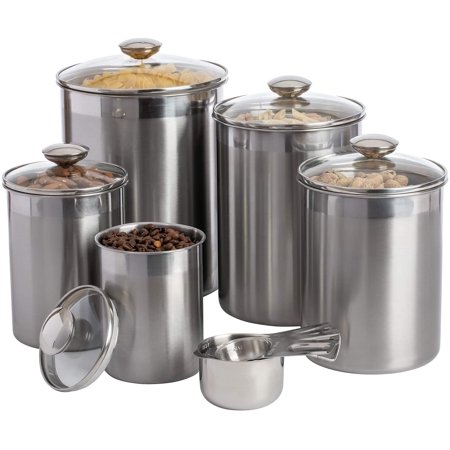 Cooking essentials 10 piece stainless steel set. Progressive prepworks prokeeper 6 piece kitchen clear plastic airtight food storage organization container baking canister set, white. Shop stainless steel countertop storage at the container store. Glass canisters with airtight lids window set of 4 stainless steel for kitchen. Store items and add a decorative touch with these kitchen canisters.